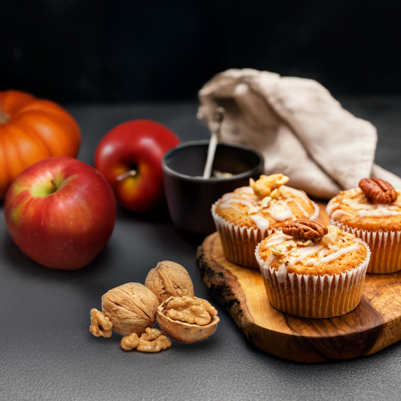 Ķirbju-ābolu mafini ar kanēli un riekstiem